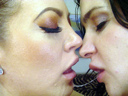 Now, with both women naked and drenched with oil, the battle becomes more and more erotic until it becomes clear that the sexual heat between Tilly and Carmen is too much to resist.  Slippery, sensuous tit-to-tit mashing leads to intense (and drooling) kisses!
